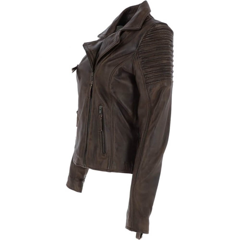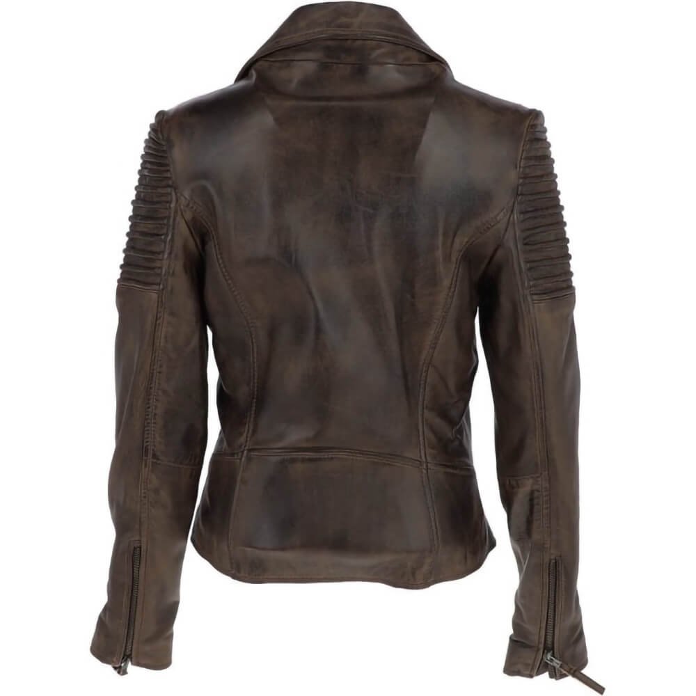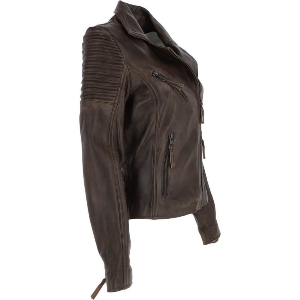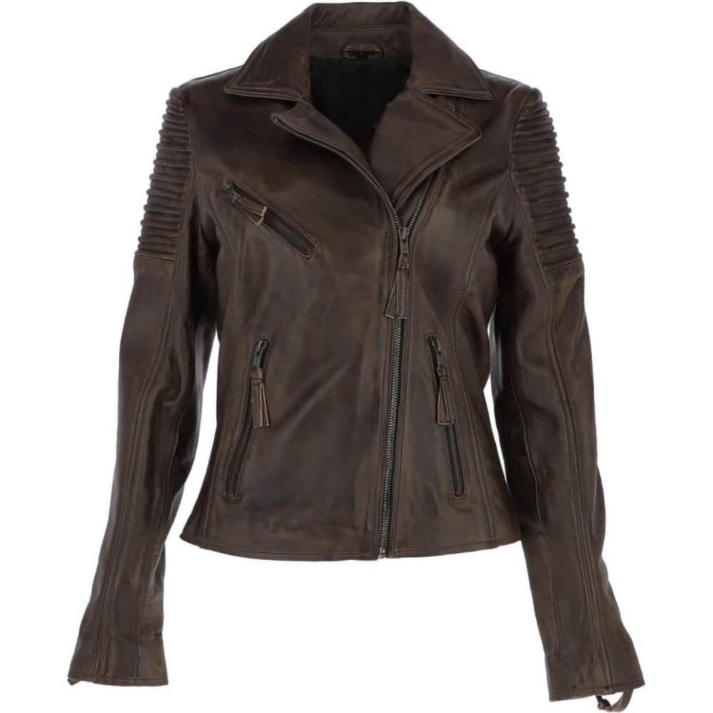 Aviatrix Distressed Brown Biker Leather Jacket Womens