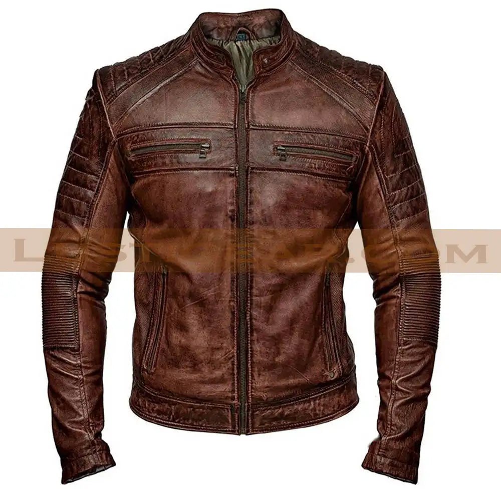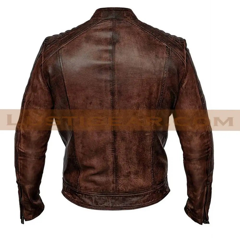 Cafe Racer Distressed Dark Brown Biker Leather Jacket Mens Motorcycle Coat.