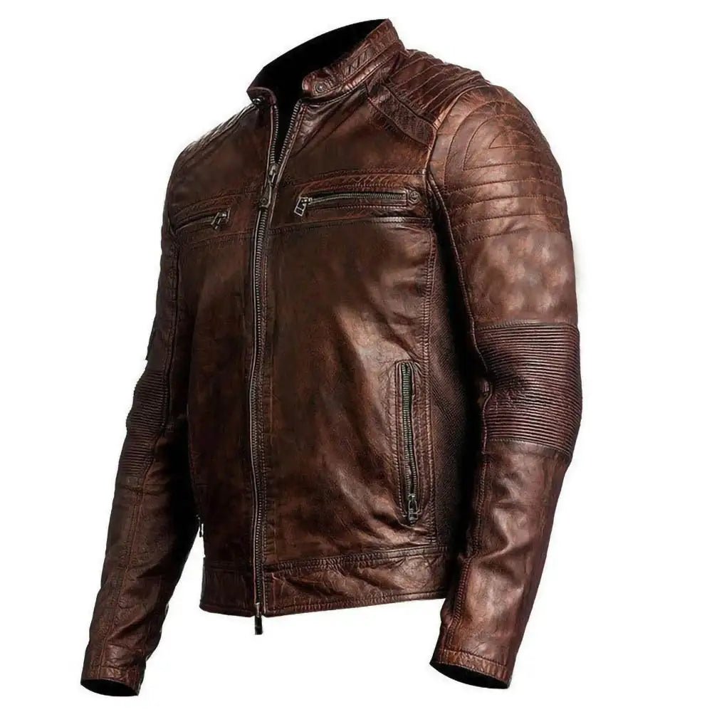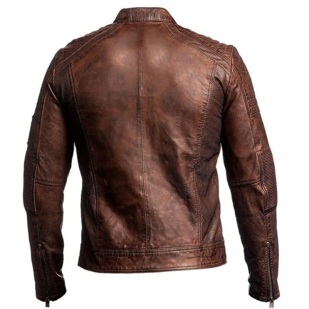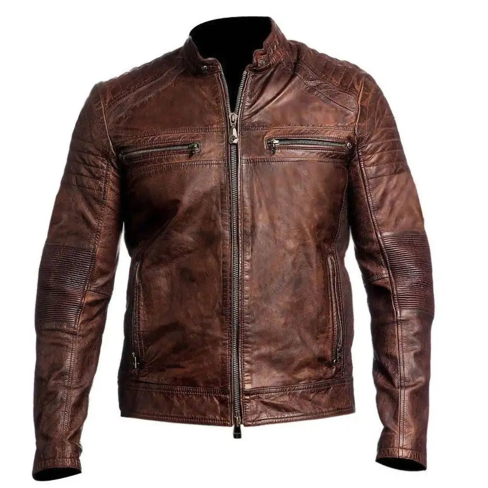 Cafe Racer Moto Biker Dark Distressed Brown Leather Jacket Mens.