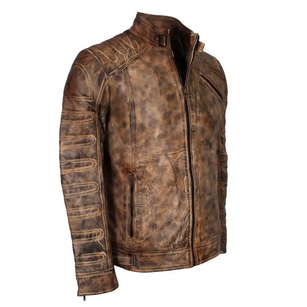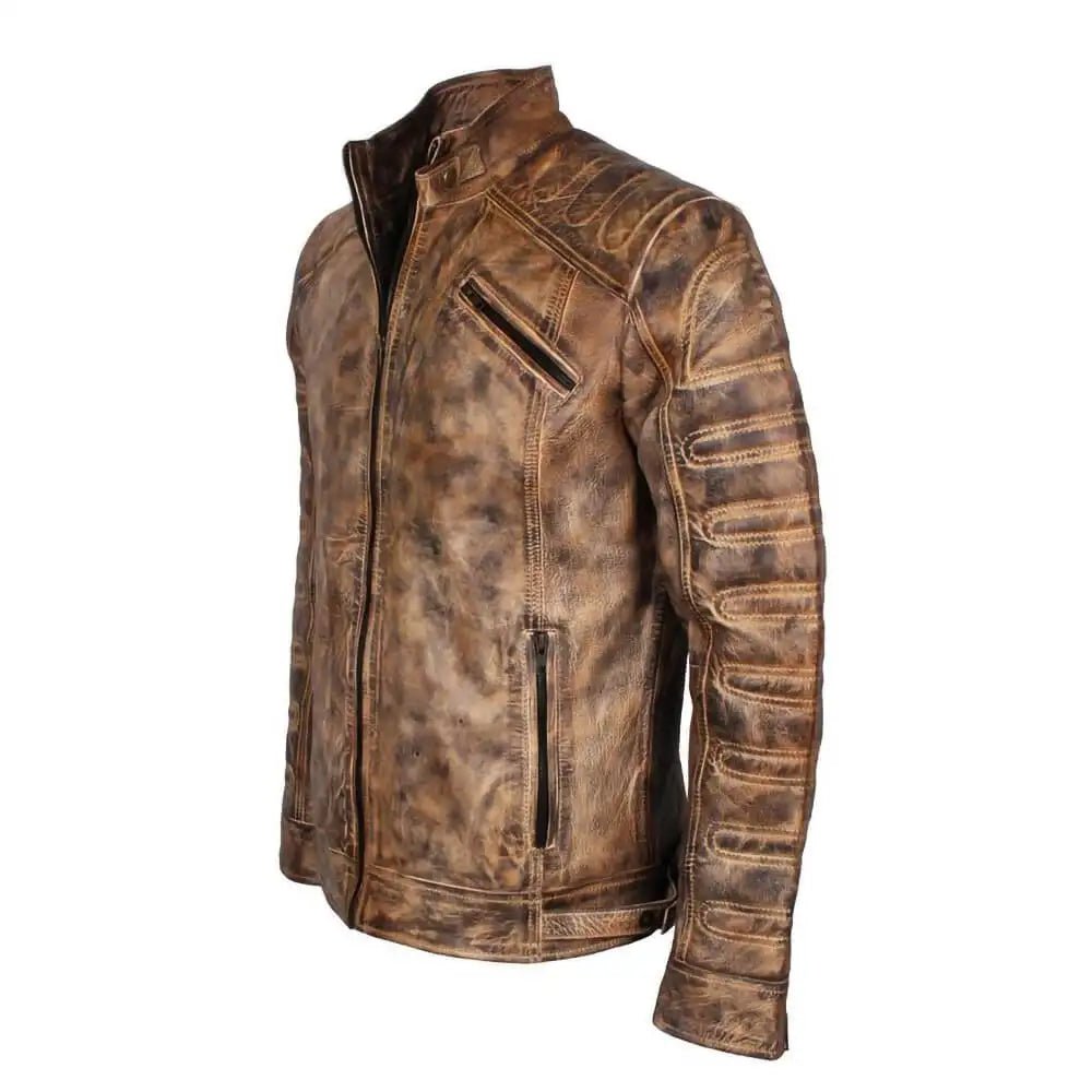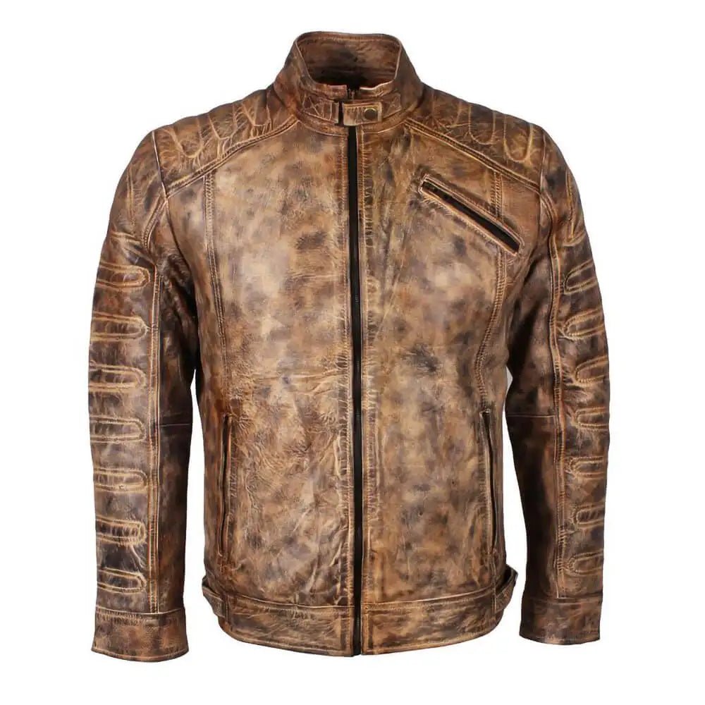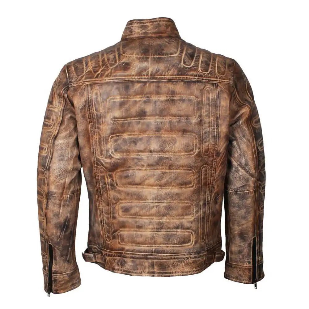 Cafe Racer Oil Wax Vintage Style Tan Mens Biker Jacket.