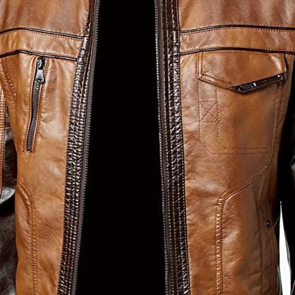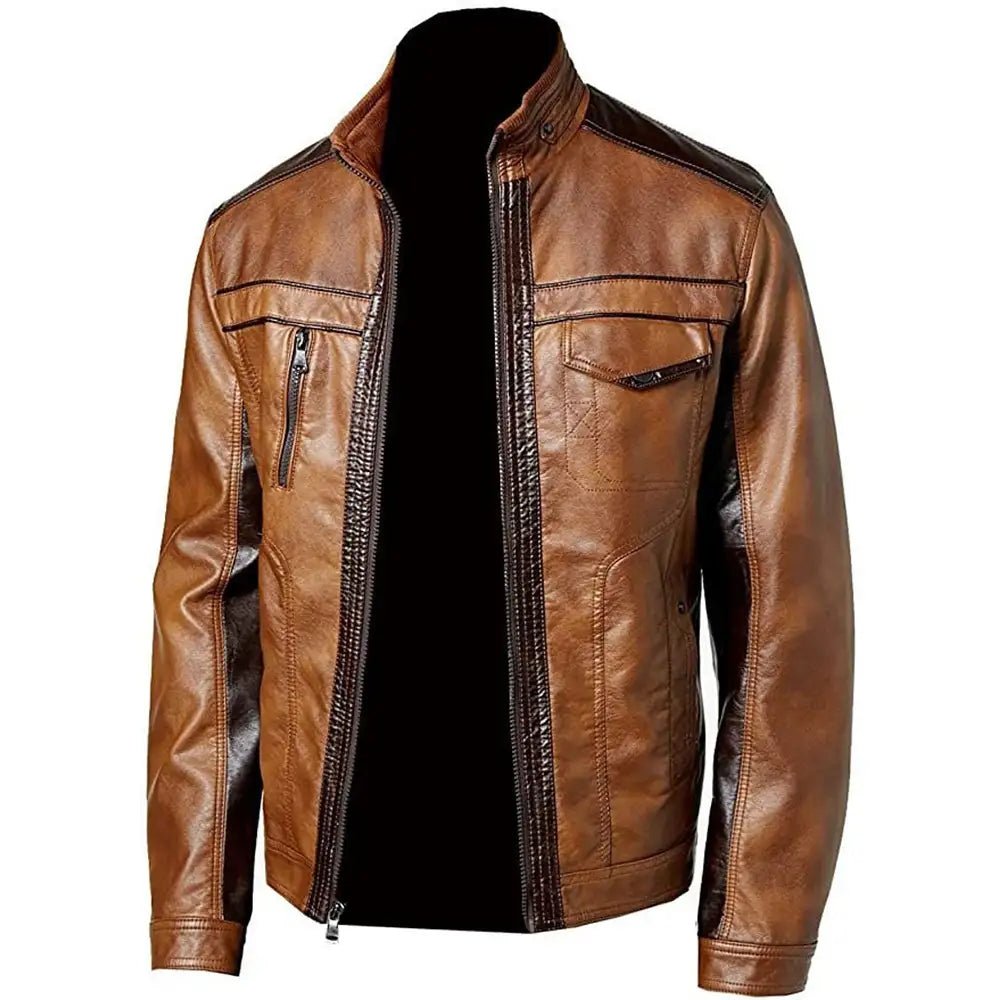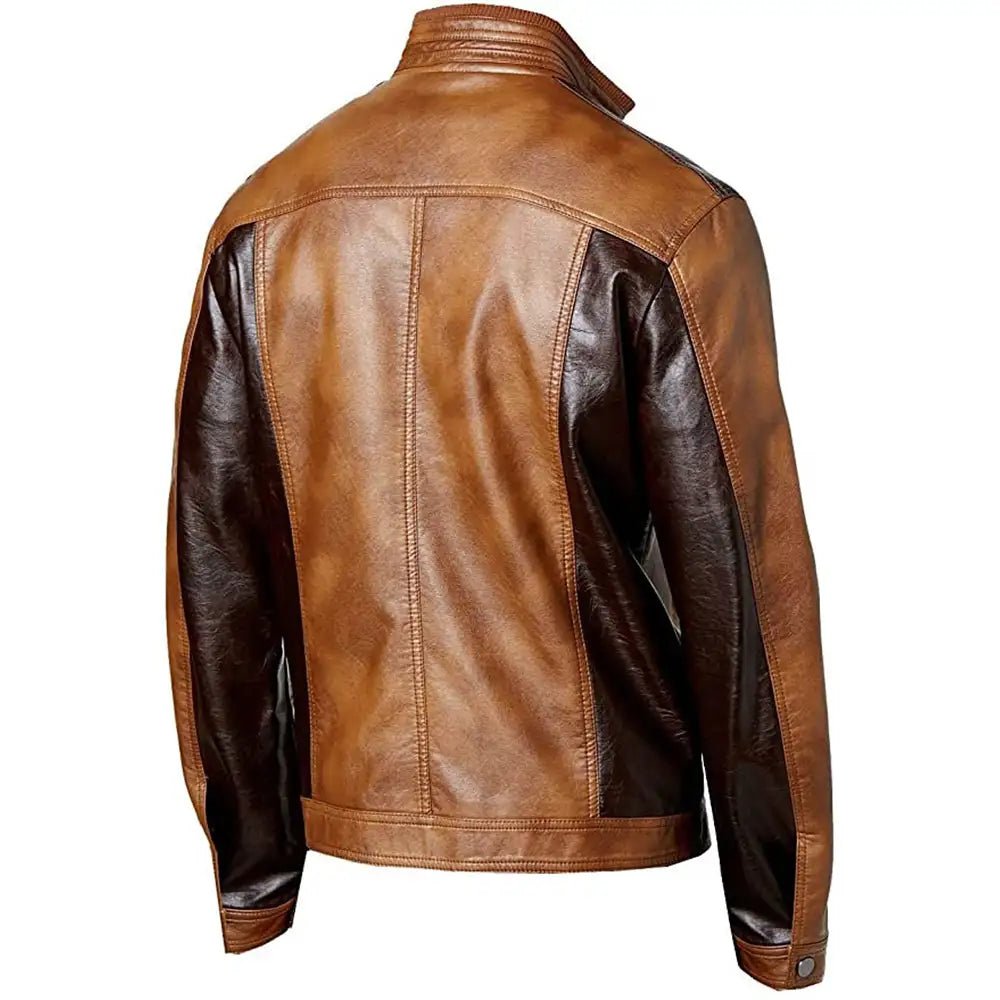 Cafe Racer Vintage Wax Tan, Dark Brown Contrast Mens Biker Leather Jacket Street Wear Coat.