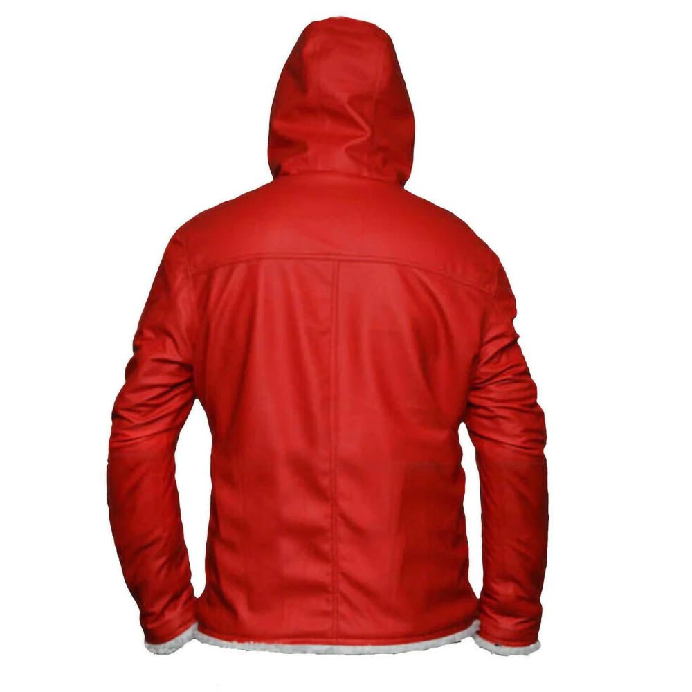 Christmas Santa Claus Fur Red Leather Hoodie Coat