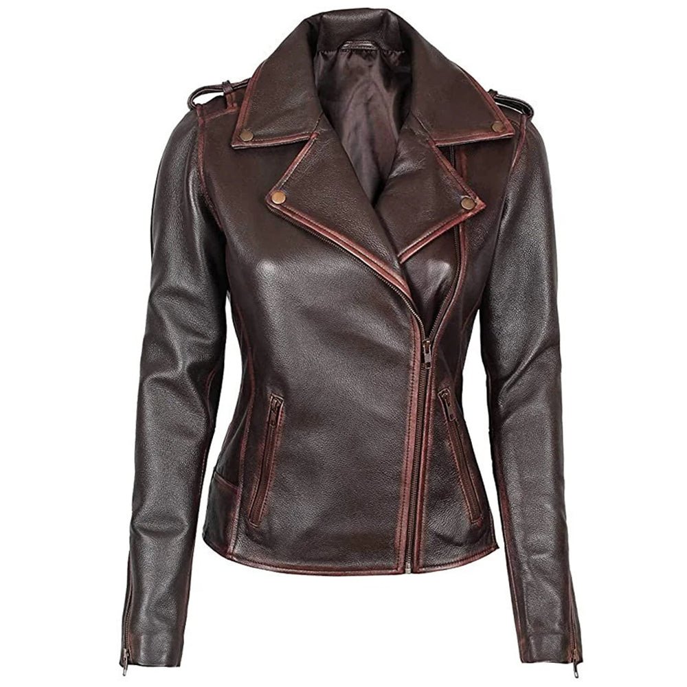 Colorado Womens Distressed Dark Brown Leather Jacket
