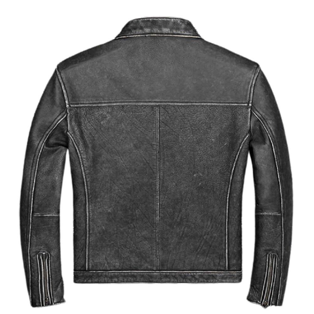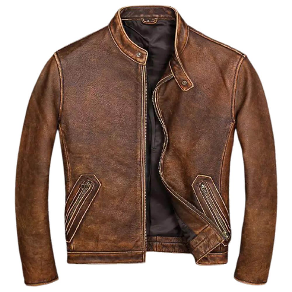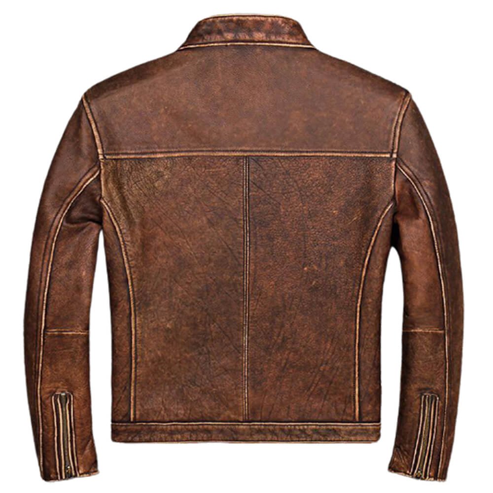 Cross Pocket Distressed Vintage Wax Black / Brown Real Leather Jacket Mens.