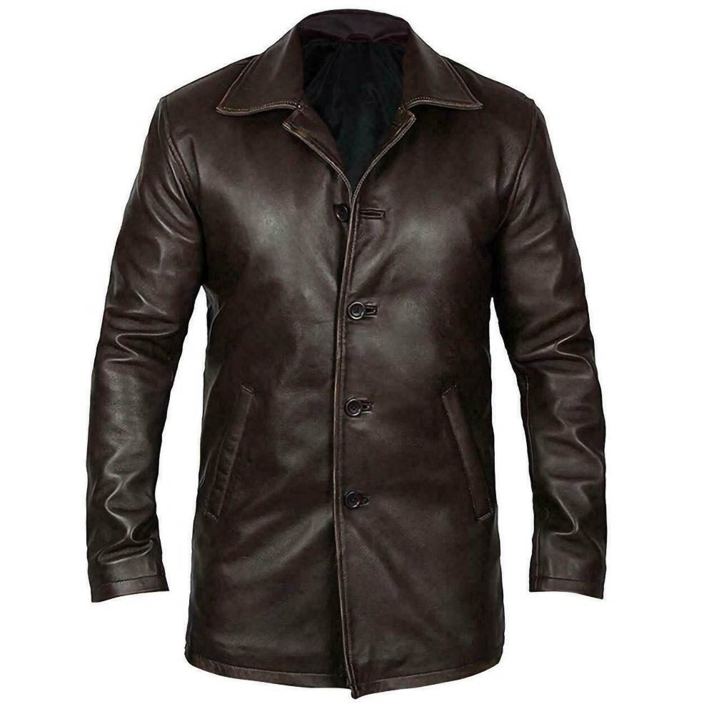 Dark Brown 5 Button Mens Long Trench Coat Real Leather Jacket.