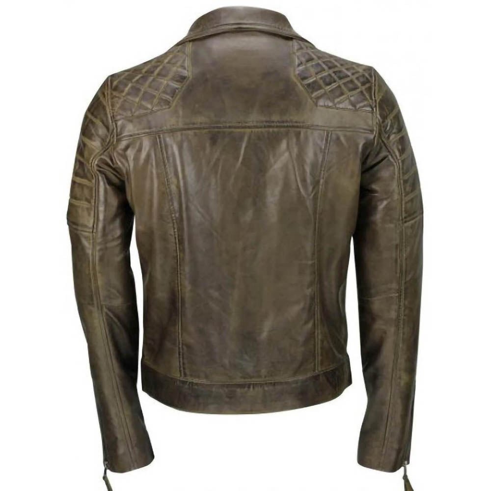 Diamond Quilted Vintage Wax Distressed Brown Leather Jacket Mens Biker Coat.