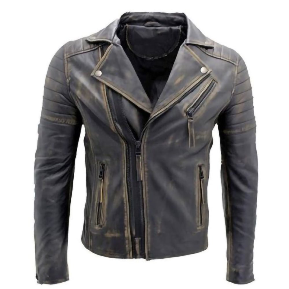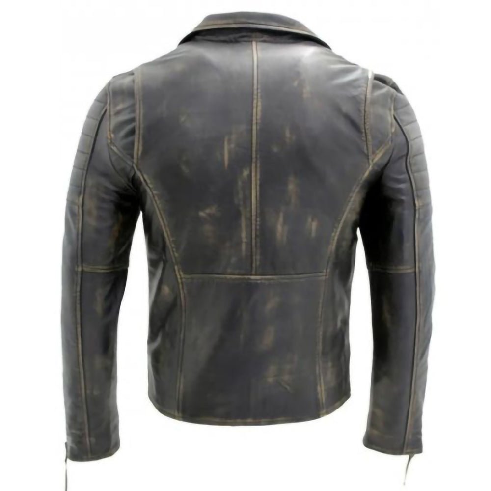 Double Zip Slim Fit Style Motorcycle Biker Distressed Black Leather Jacket Mens