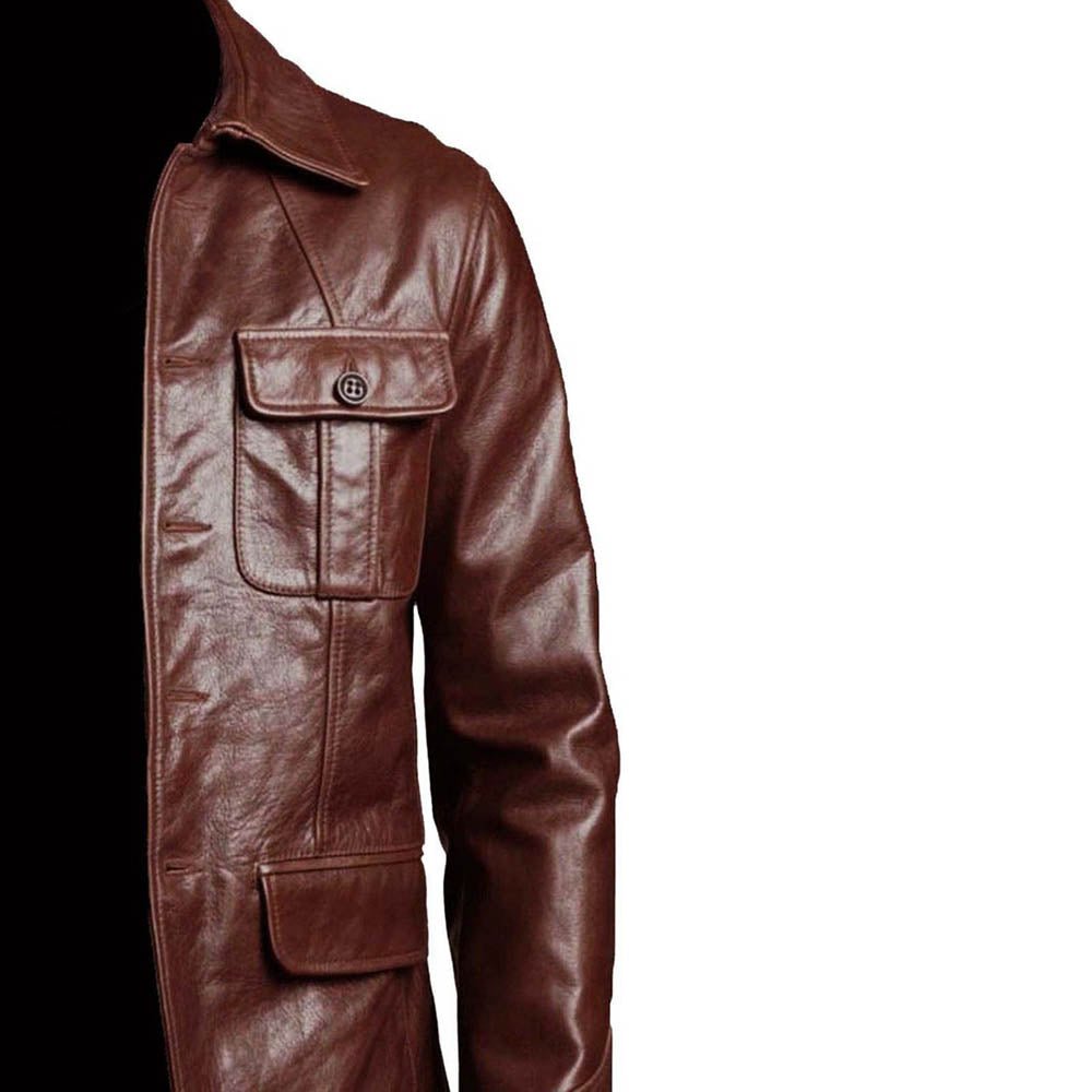 Flap Pocket Five Button Brown Blazer Coat Mens