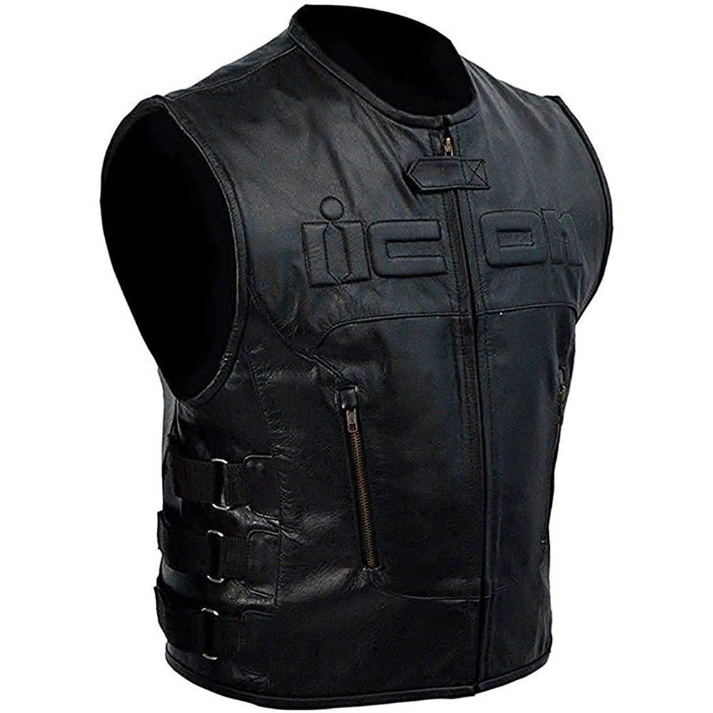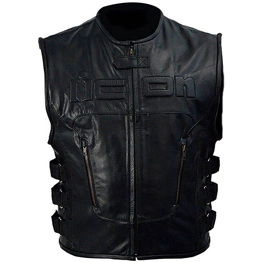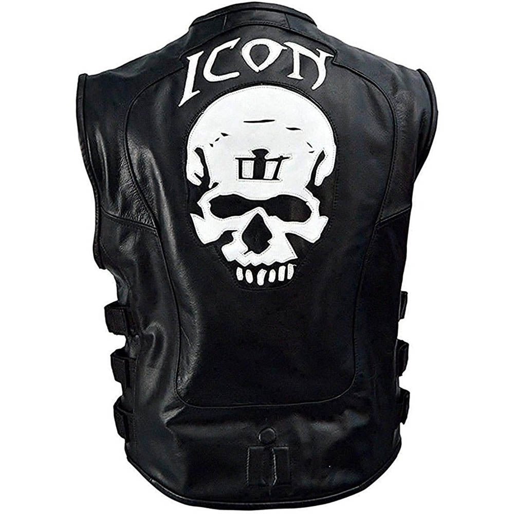 Icon Skull Halloween Style Biker Black Leather Vest Mens.