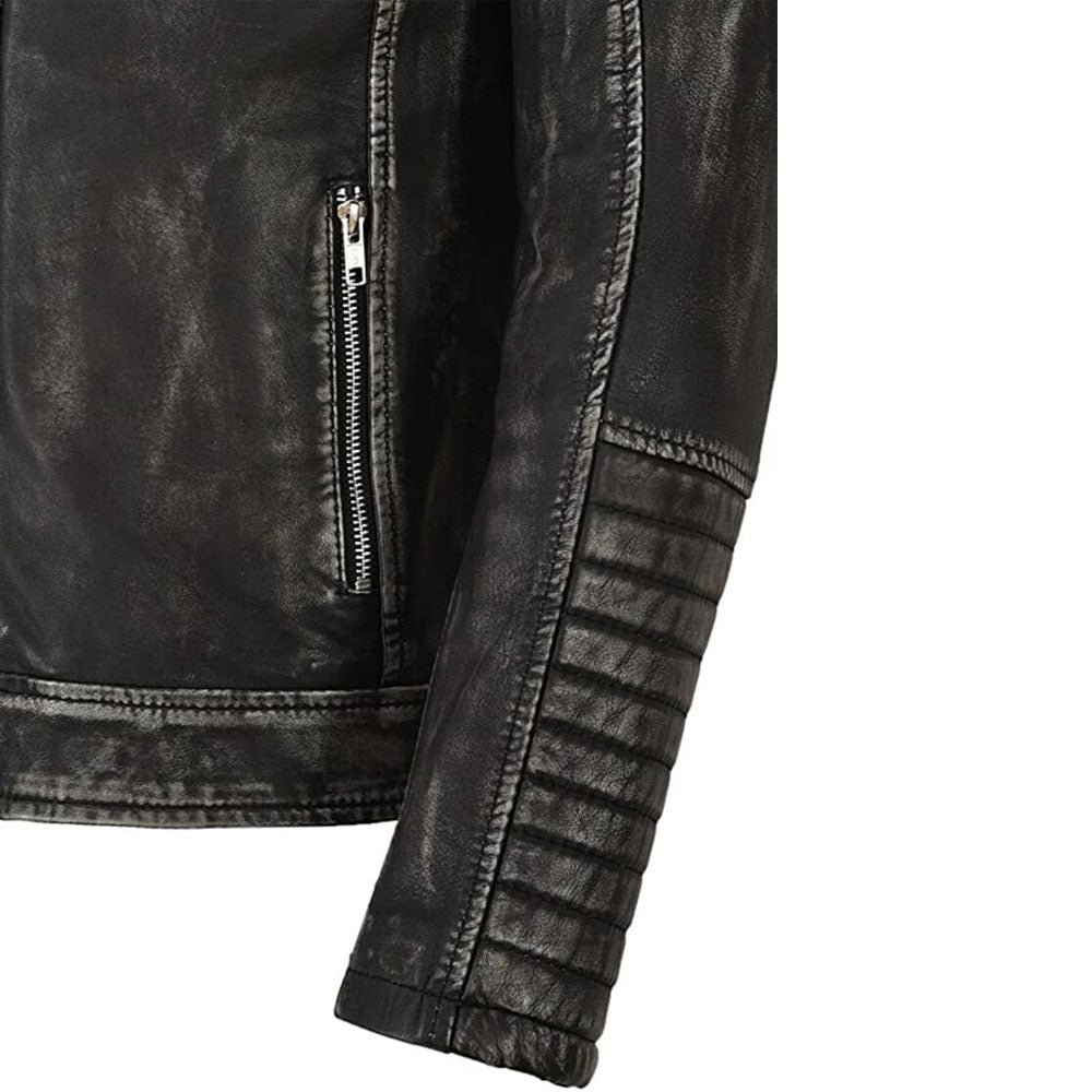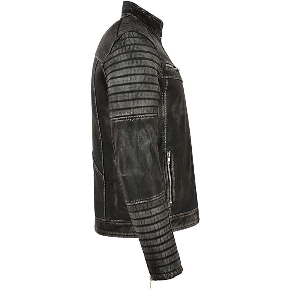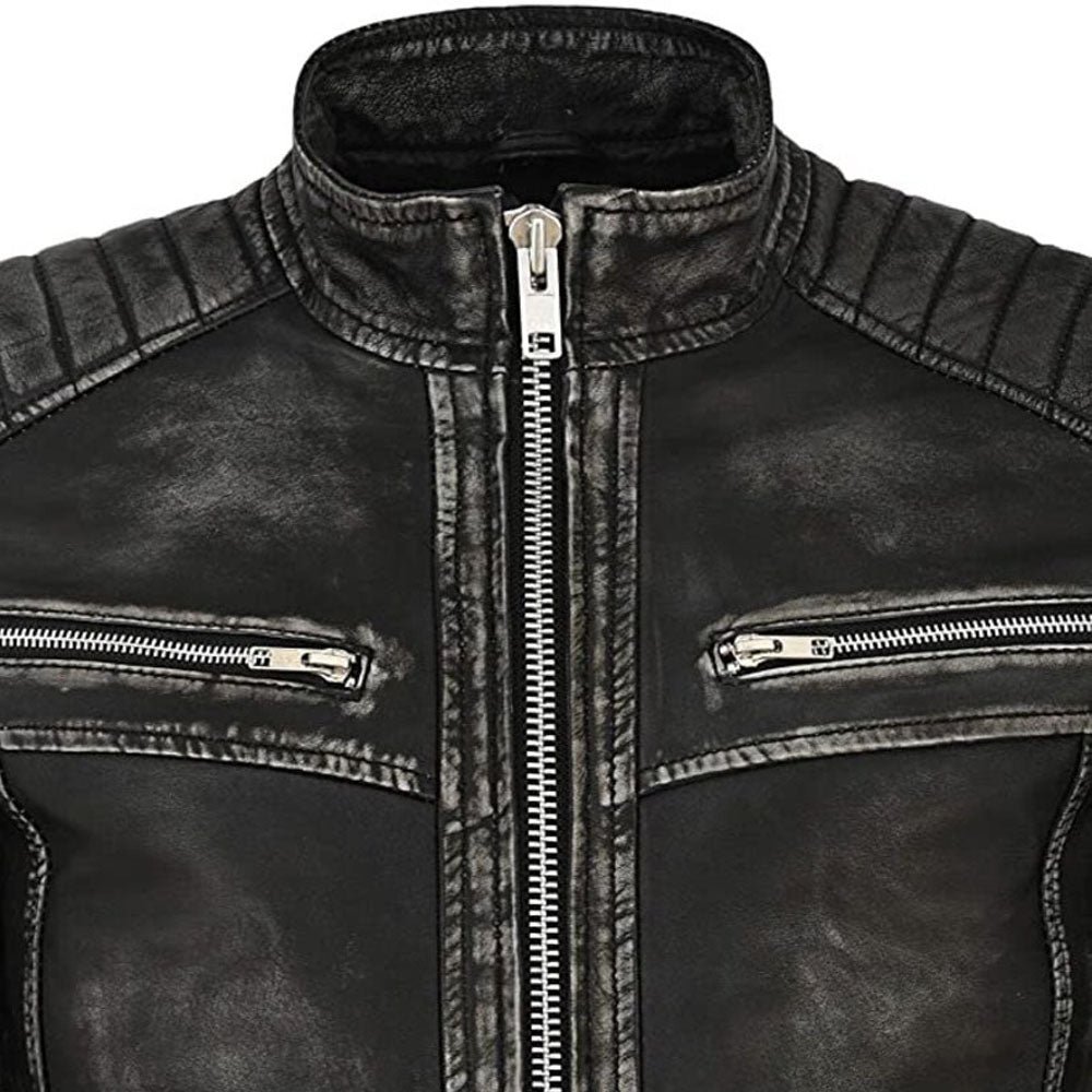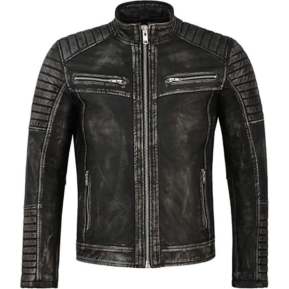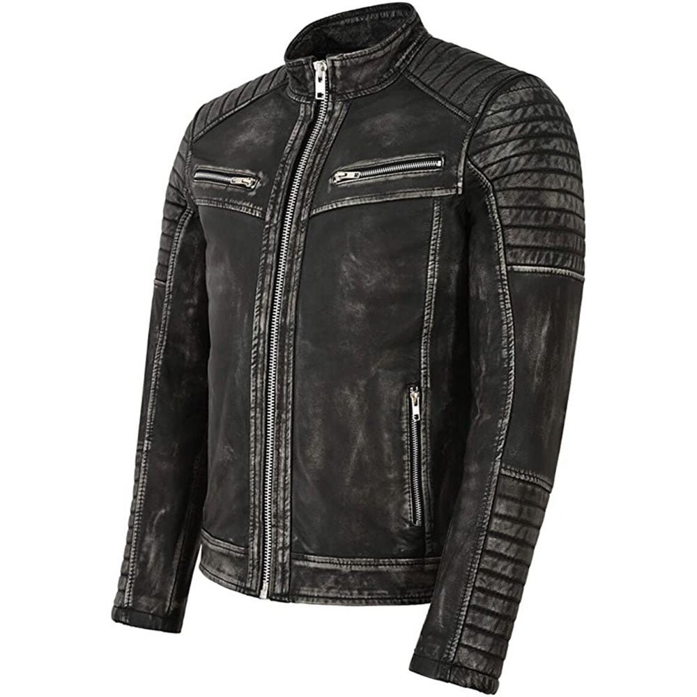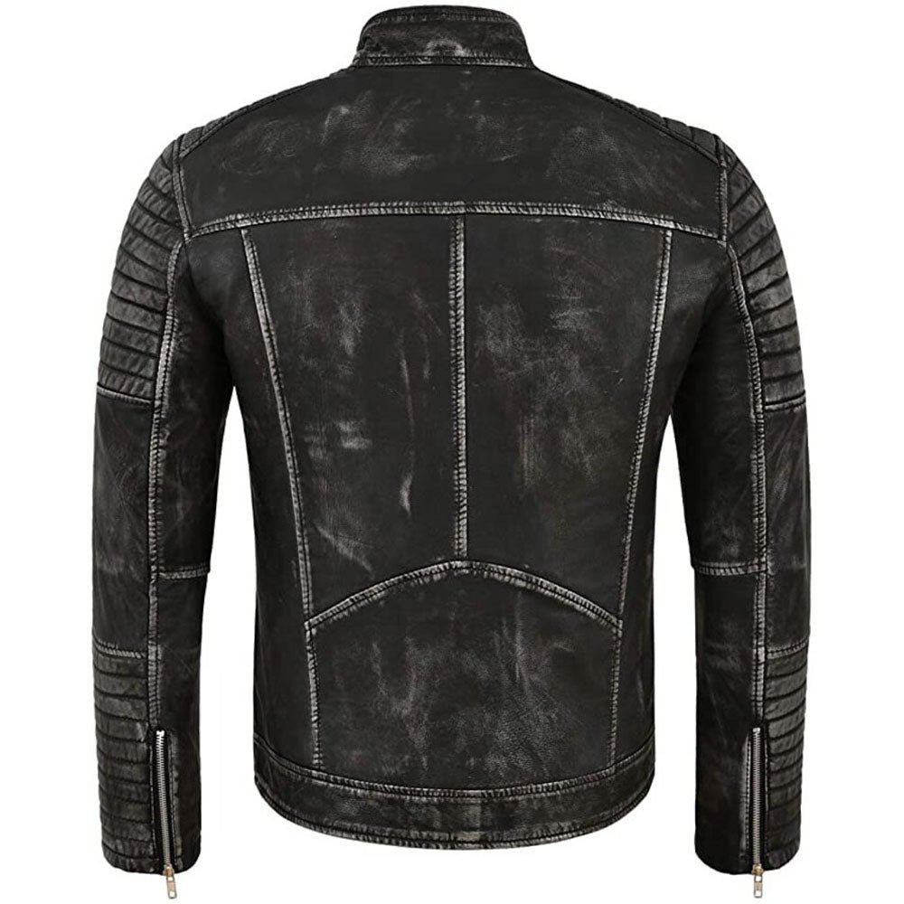 Distressed Wax Black Cafe Racer Biker Leather Jacket Men’s Vintage Style Rider Coat.