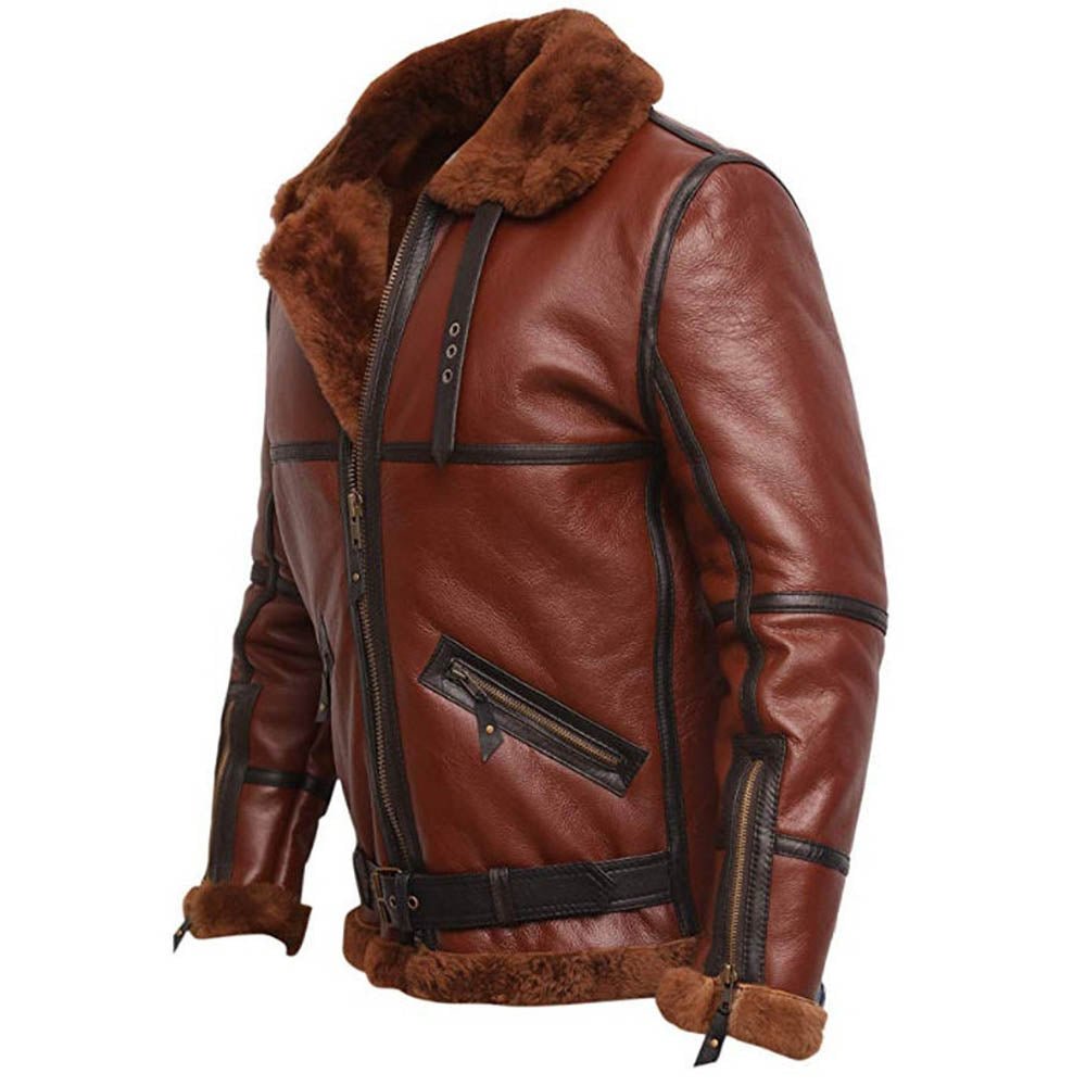 Men’s RAF British Shearling Aviator Dark Brown Bomber Flying Leather Jacket