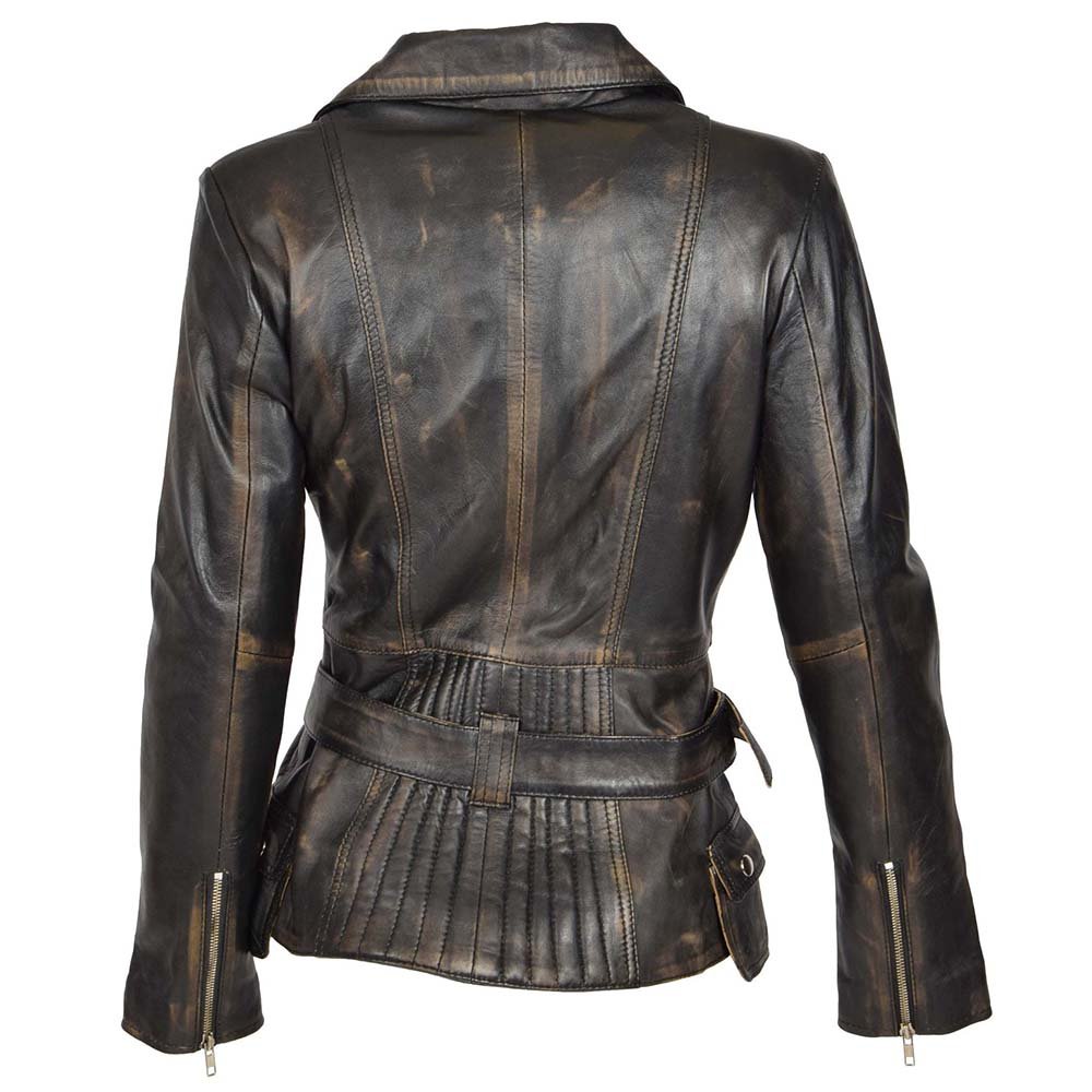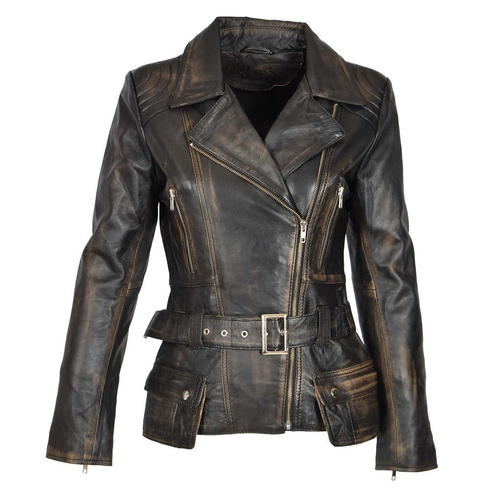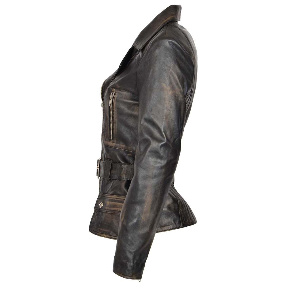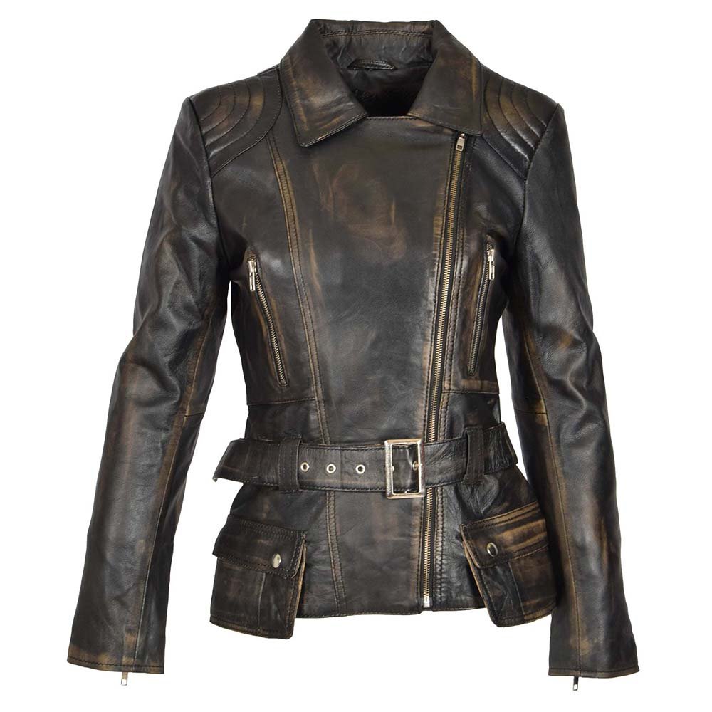 Side Pocket Distressed Vintage Wax Womens Biker Leather Jacket.