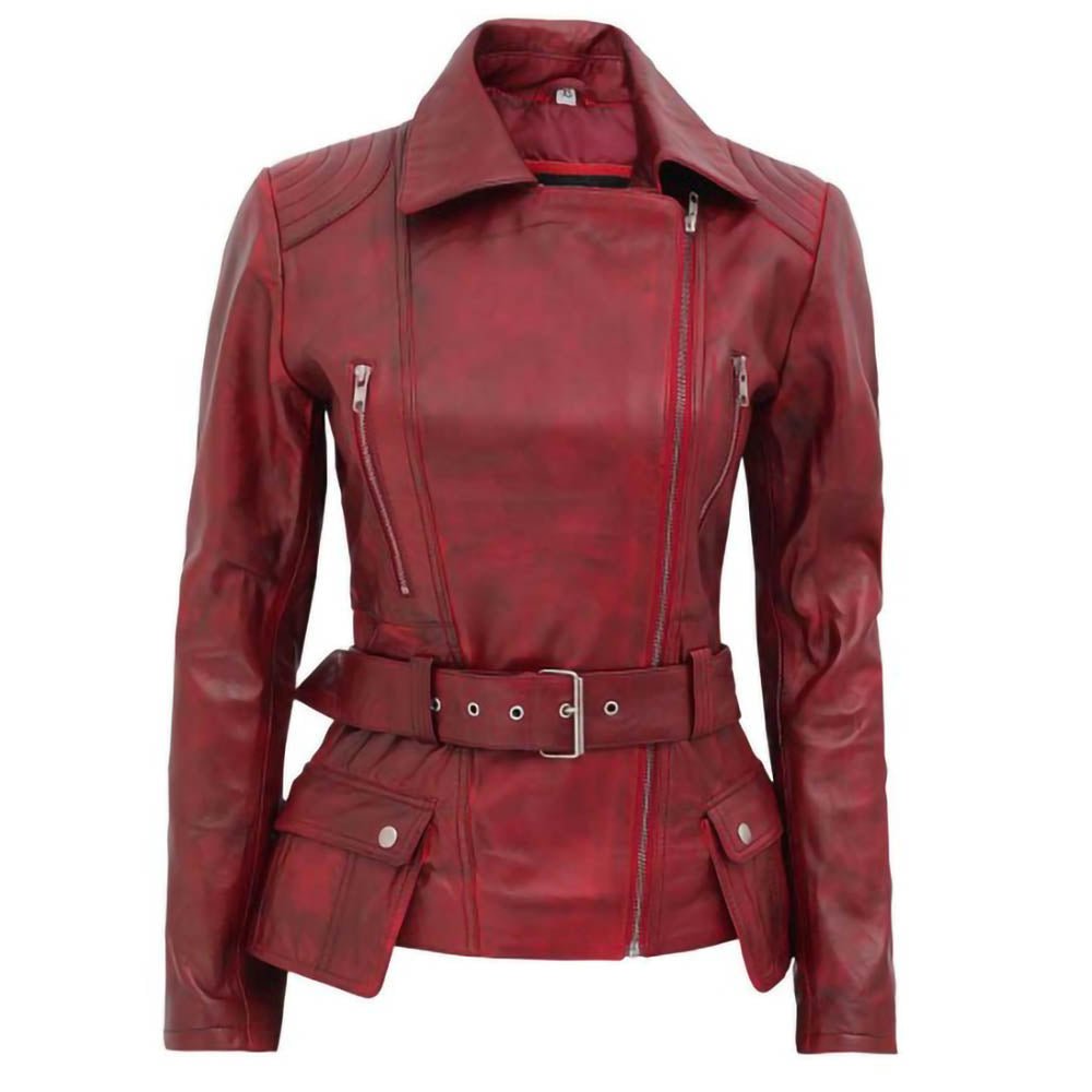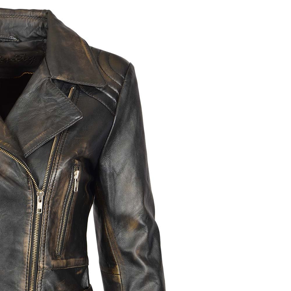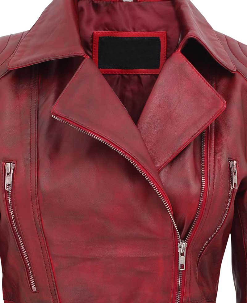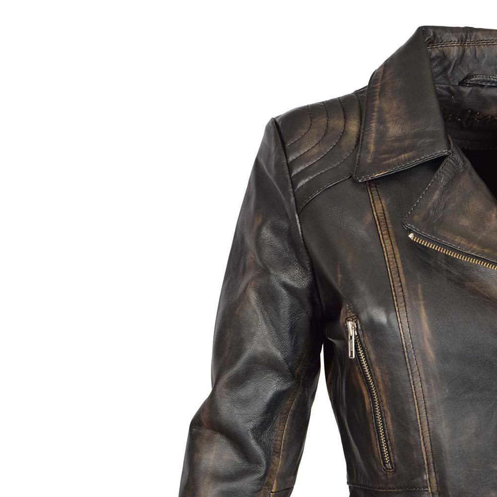 Side Pocket Distressed Vintage Wax Womens Biker Leather Jacket.