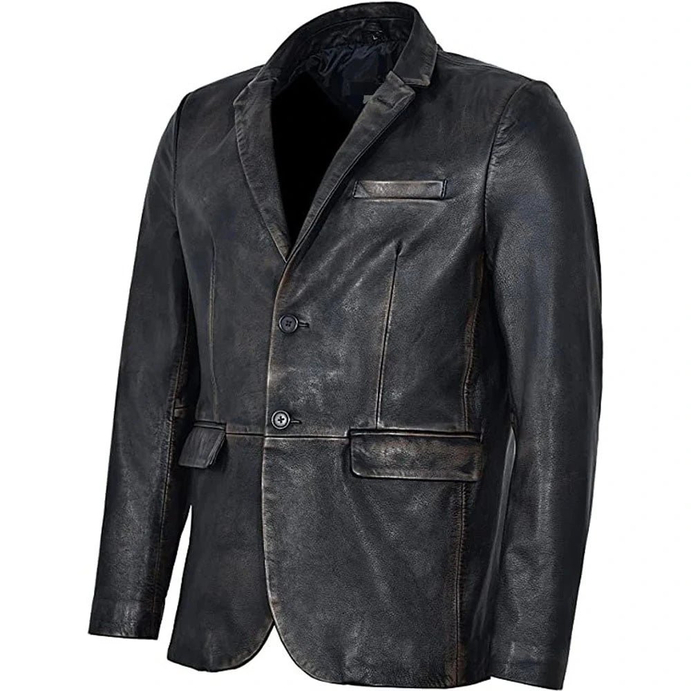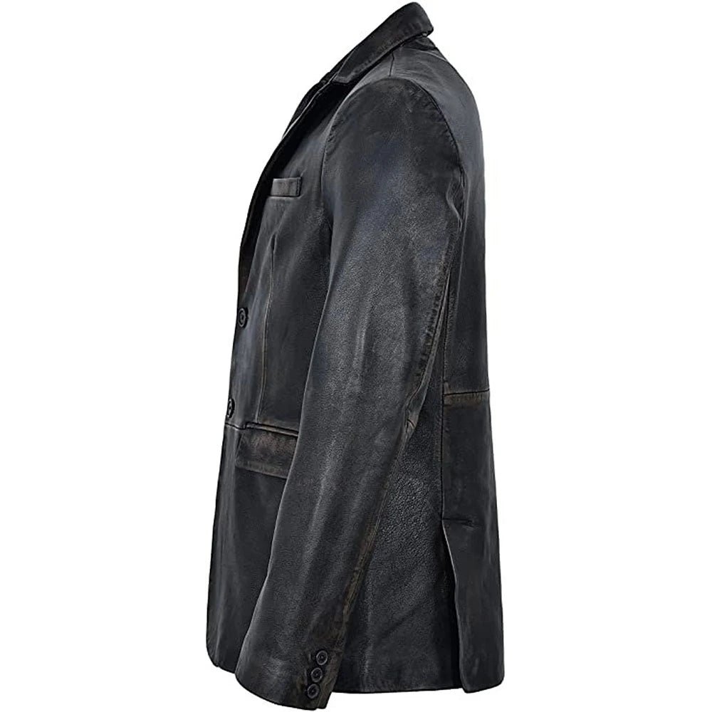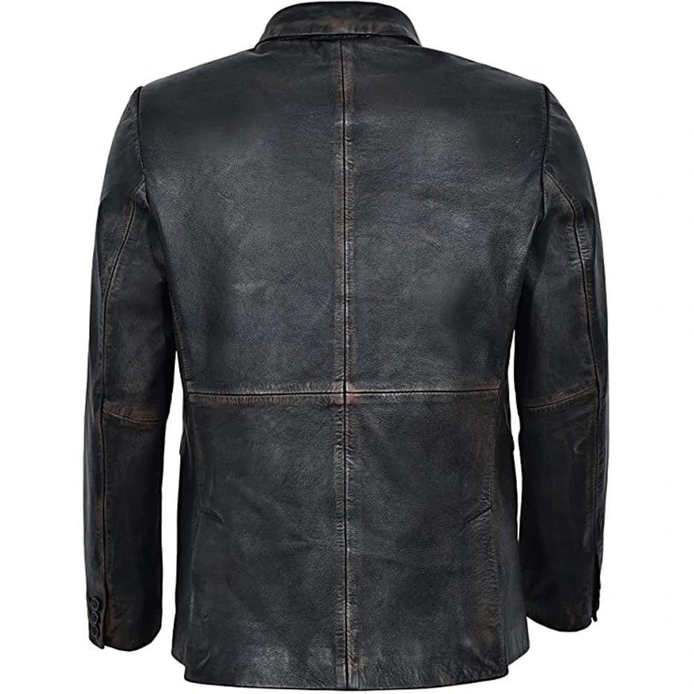 80s Vintage Leather Blazer Mens Coat Distressed Black Italian Style Leather Jacket.