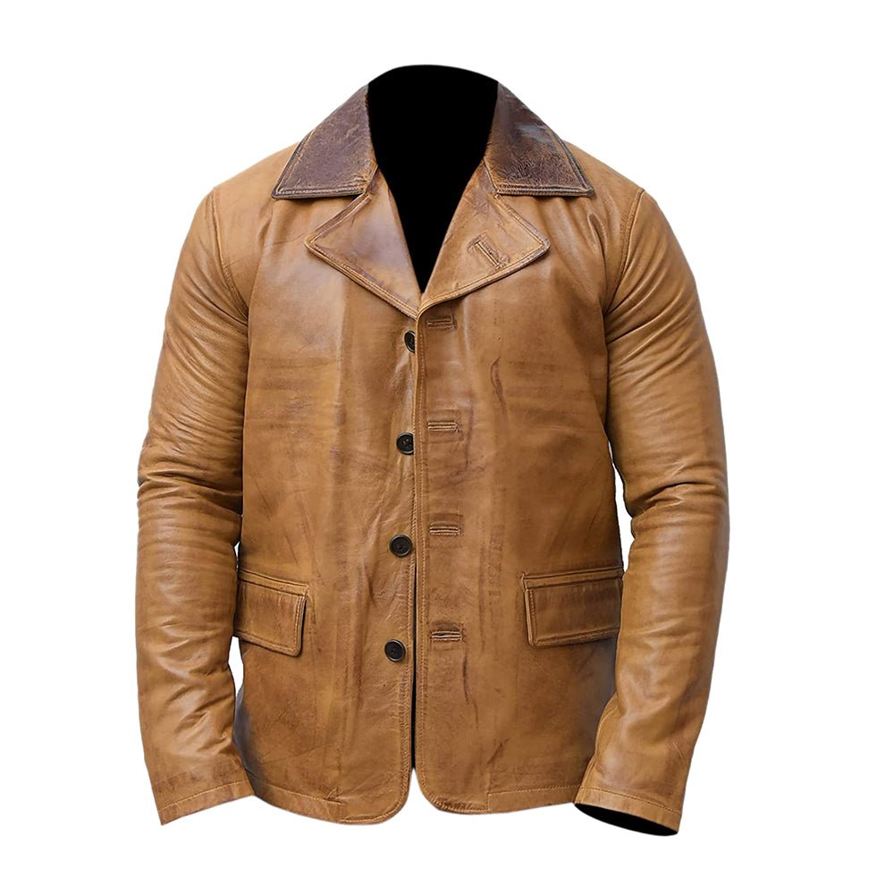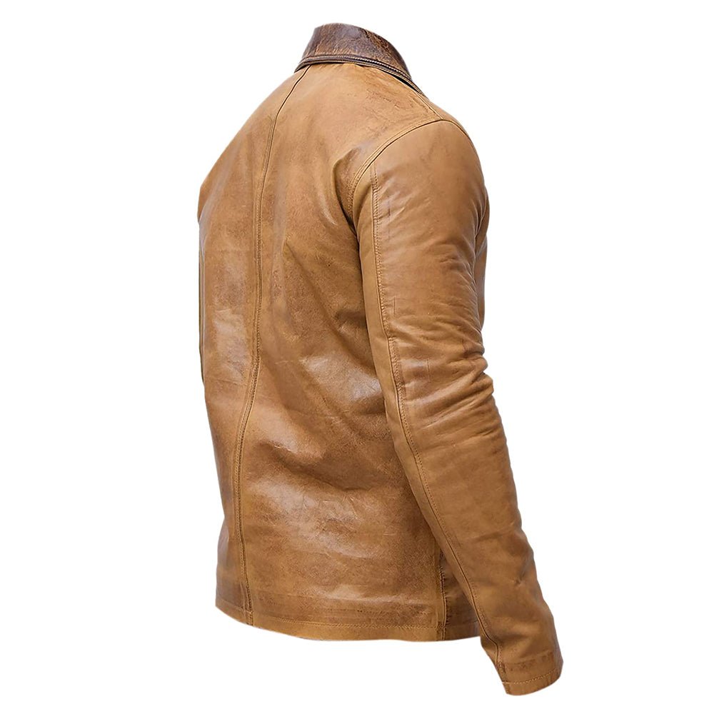 Vintage Style Dark Collar Wax Tan Real Leather Jacket Mens.