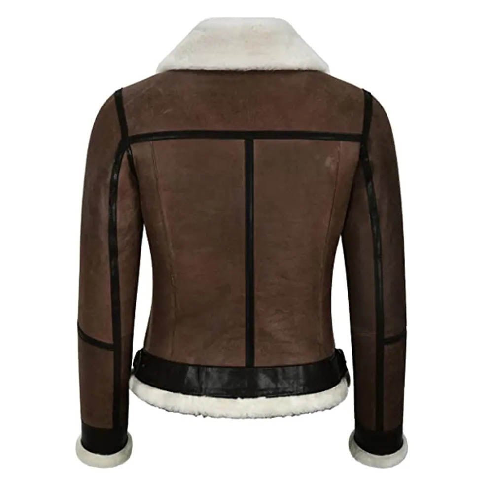 Womens Military Bomber B3 Fur Brown Real Leather Jacket