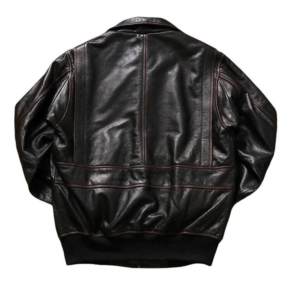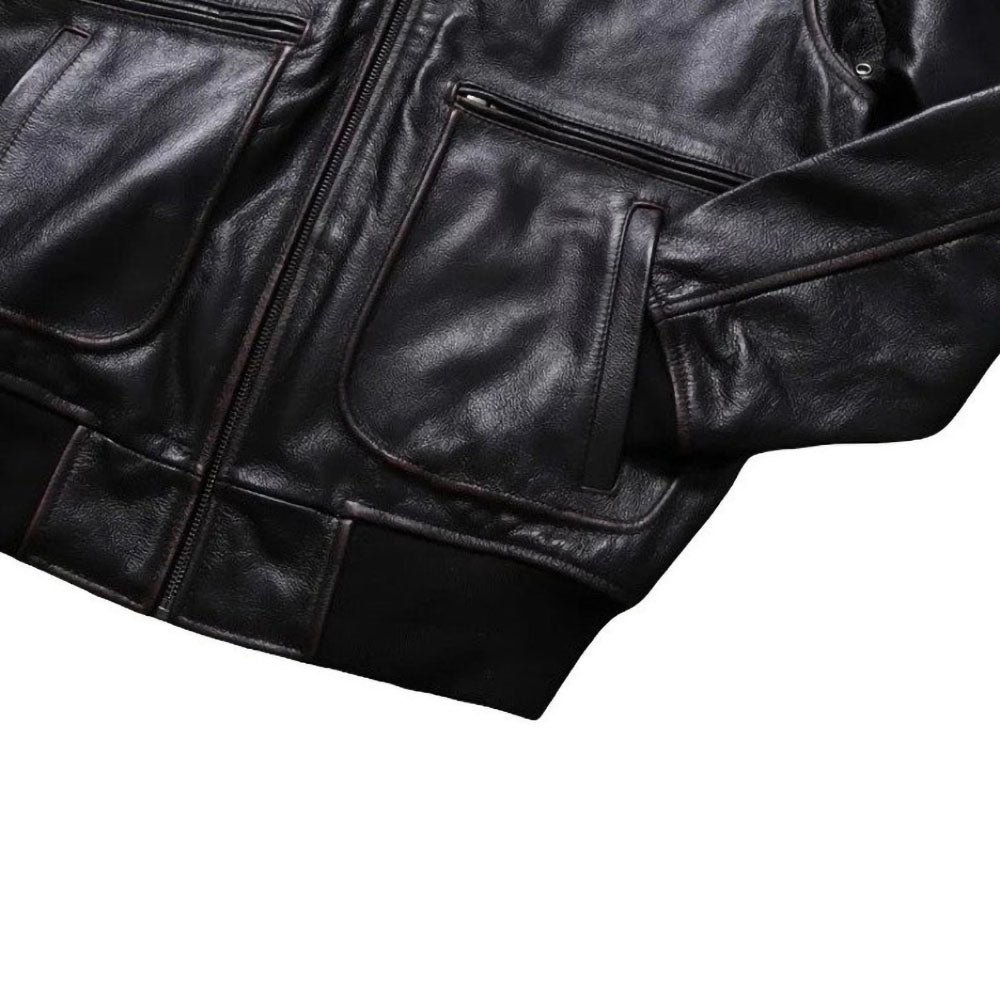 Vintage Style Military A2 Aviator Leather Jacket Mens Dark Brown Leather Coat.